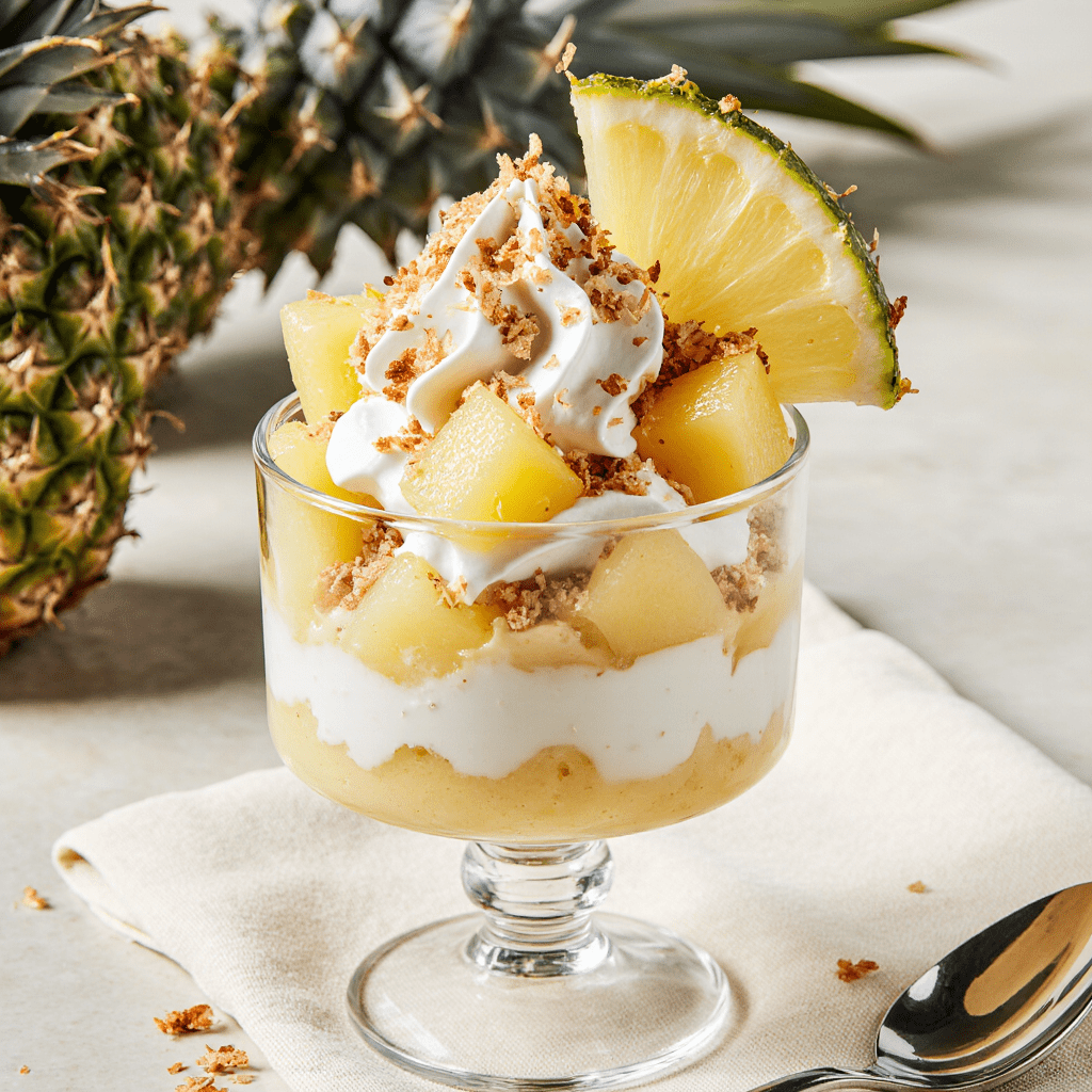 Ce dessert coco-ananas façon Piña Colada est une invitation au voyage. Frais, simple à réaliser et léger, il est parfait pour terminer un repas avec élégance tout en douceur.